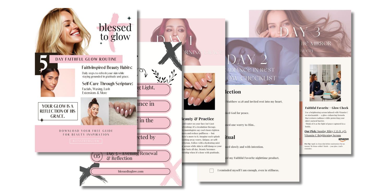 Download Your Free Faithful Glow GuideBe the first to discover our favorite faith-inspired self-care finds, beauty routines, and lifestyle picks curated just for women of faith.